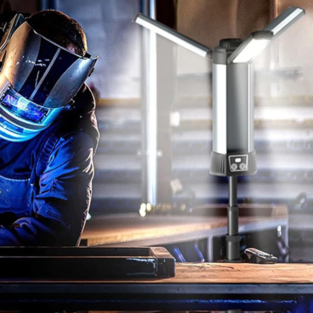 6000mAh LED Work Light Rechargeable Construction Light with Stand Dimmable Work Light Telescopic for Outdoor Camping