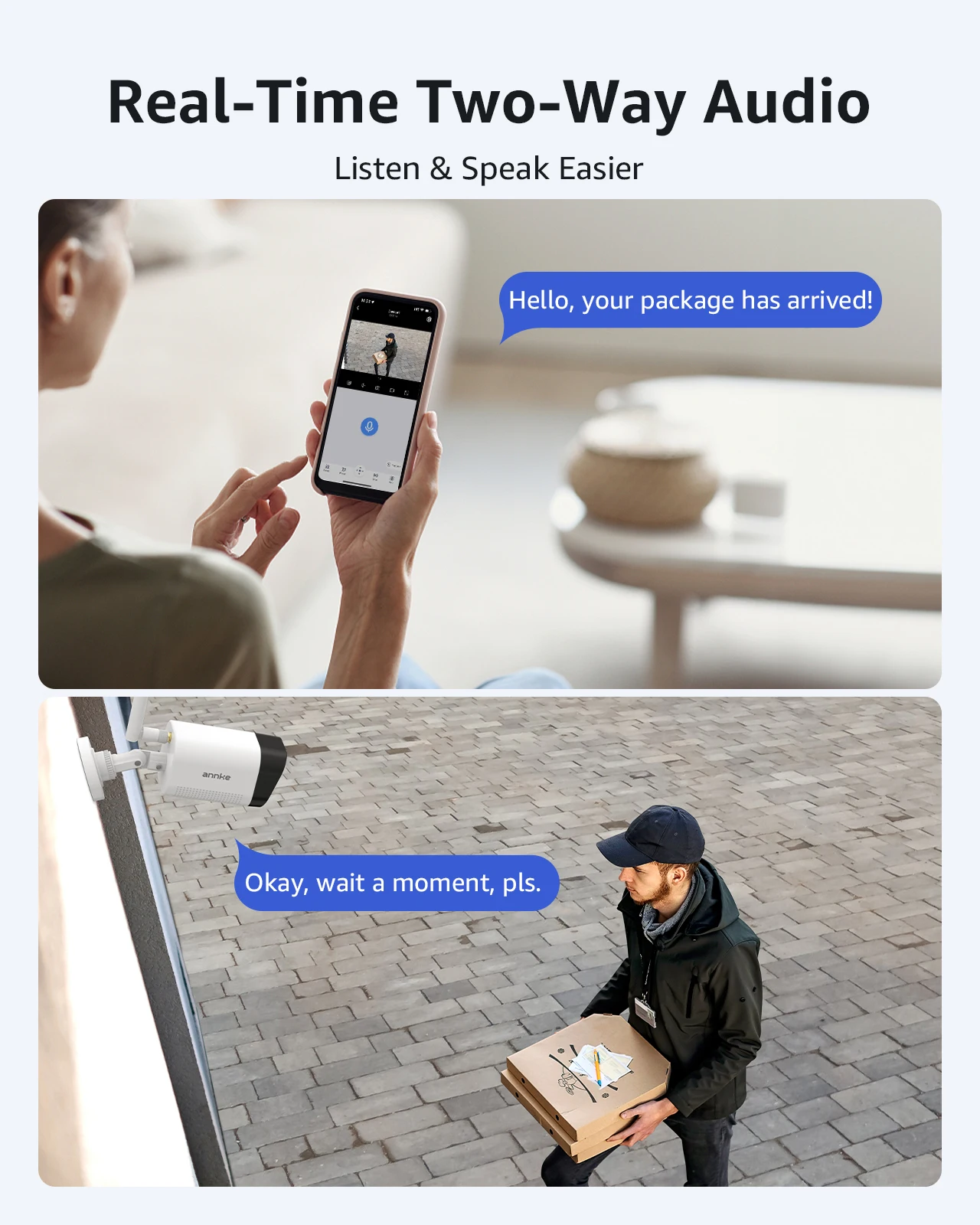 · Two-way voice intercom, built-in microphone and speaker