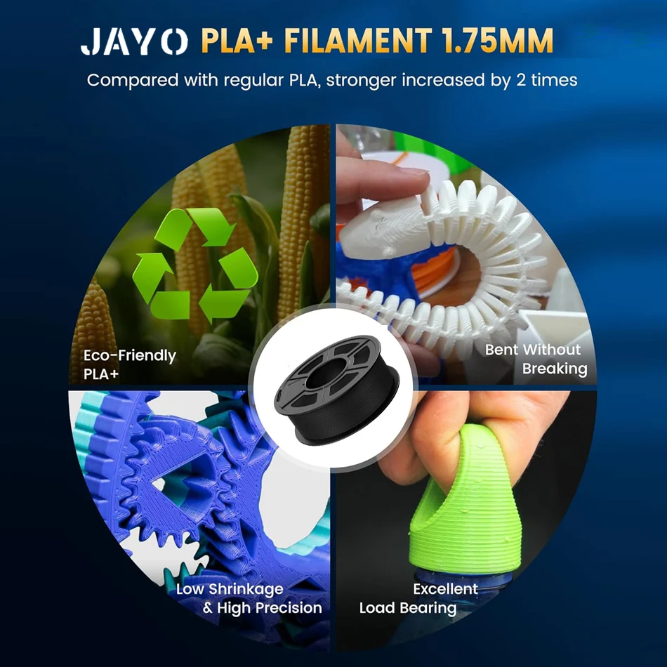 JAYO PLA Plus offers improved mechanical properties over regular PLA, providing increased impact strength and toughness.
