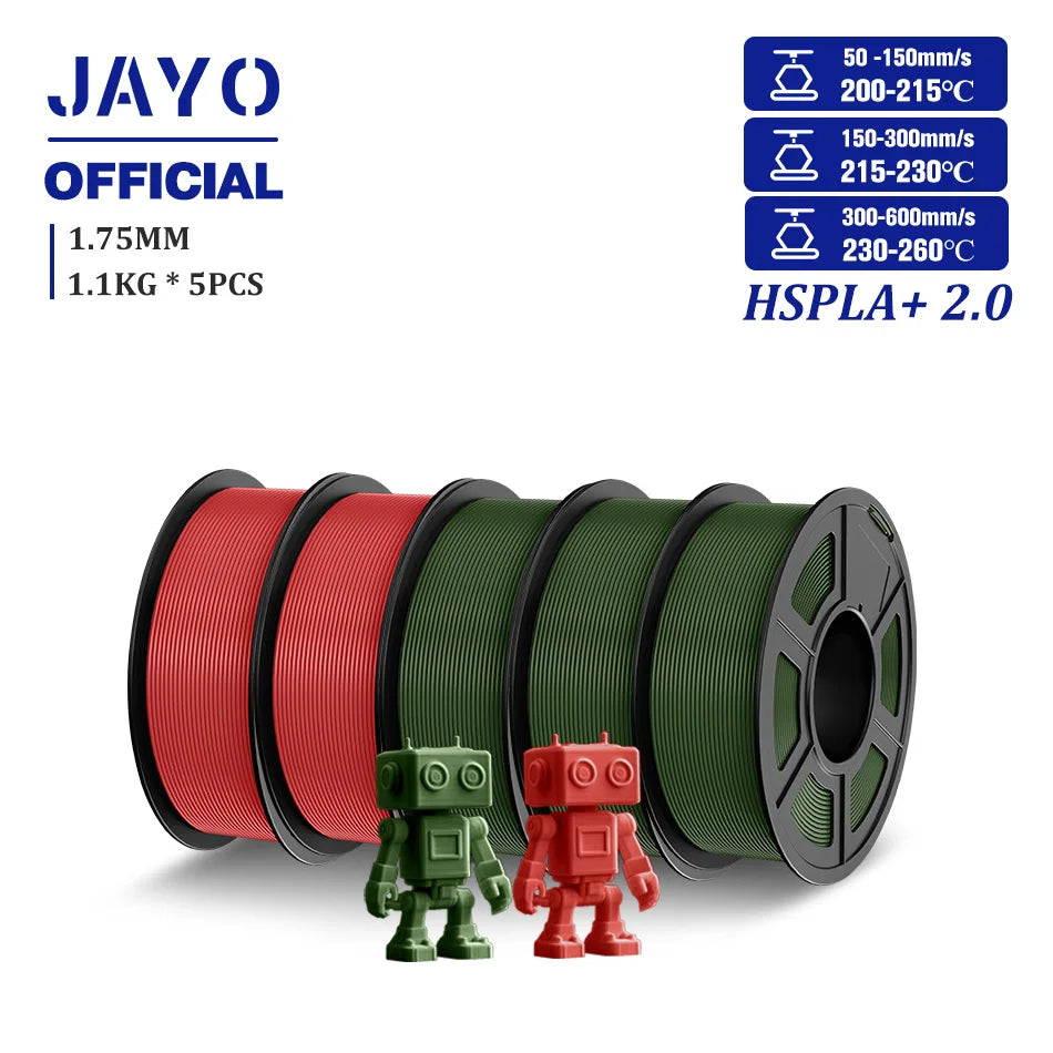 JAYO Upgrade 2.0 High Speed PLA PLUS 600MM/S 3D Printer Filament PLA+3D Filament 1.75MM 5Rolls High Toughness Filament
