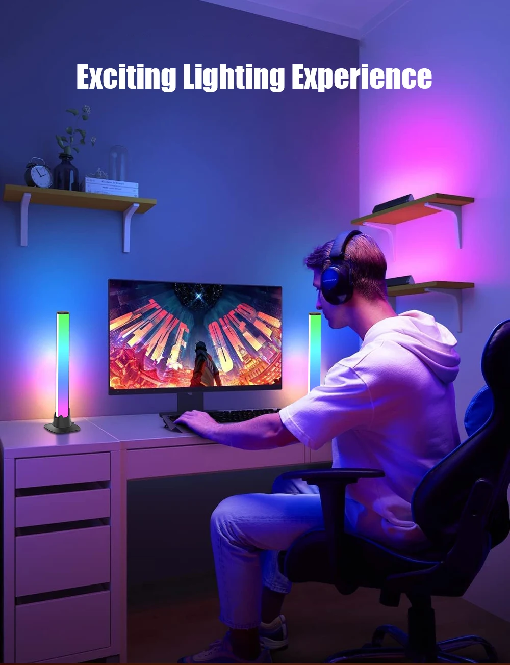 【Sound-Activated RGB Sync】Equipped with a highly sensitive built-in microphone, this light bar picks up ambient sound and music, translating it into a stunning real-time light show. Enjoy dazzling, synchronized colors that add depth and a captivating vibe to your room, elevating your gaming and entertainment.