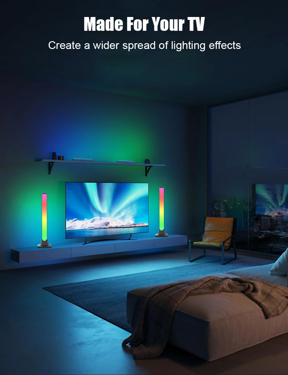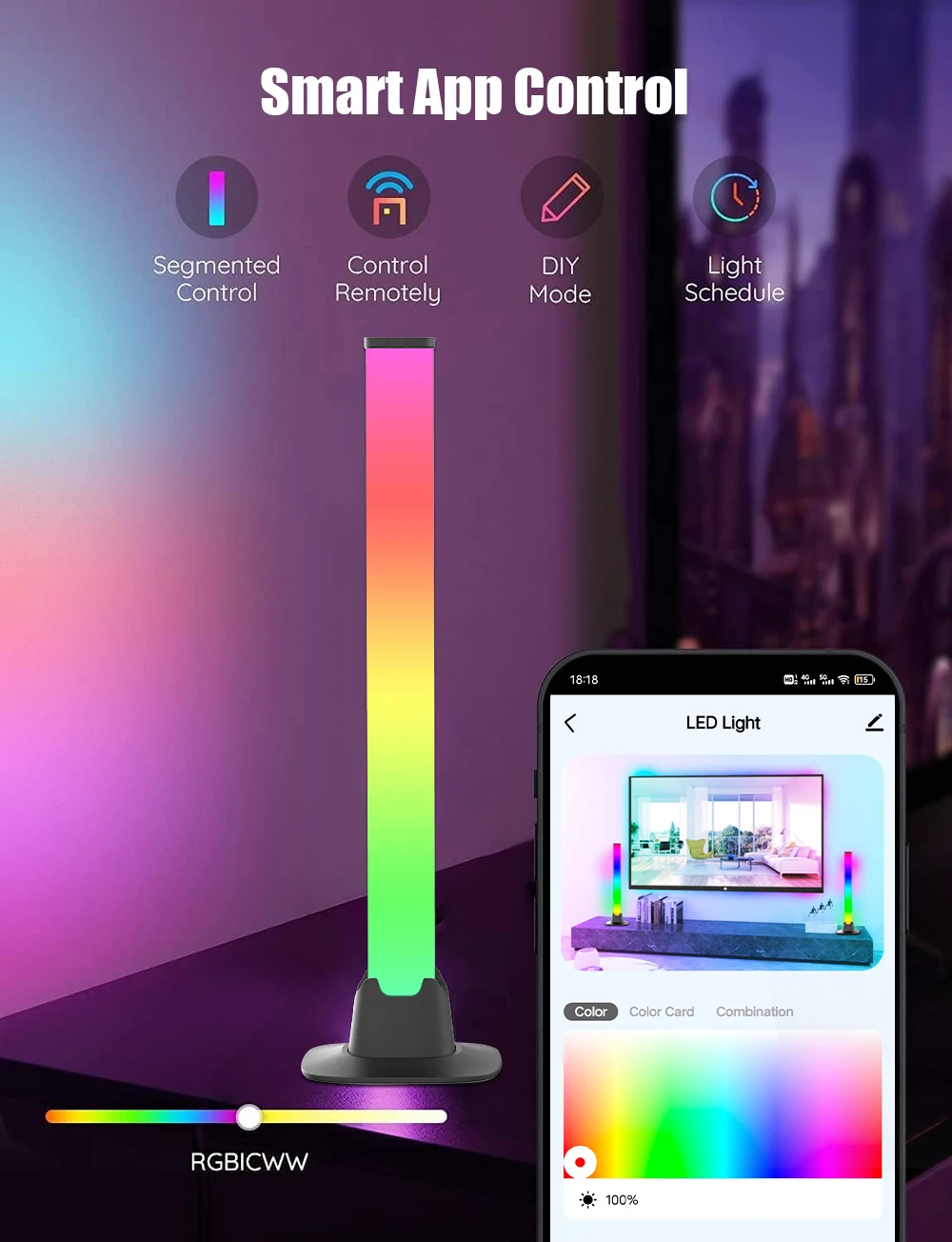 【Smart App & Voice Control】With its built-in intelligent chip, the light bar can be easily controlled via a dedicated mobile app. Customize a vast range of lighting effects and modes to create your perfect ambiance with just a few taps. Moreover, it seamlessly integrates with your smart home ecosystem through Wi-Fi connectivity, supporting Alexa and Google Assistant for full voice control—adjust brightness, change colors, or turn the lights on and off, completely hands-free. Remote management is also supported wherever you are.